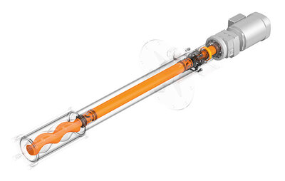 Die Exzenterschneckenpumpe Typ KL-T eignet sich als Eintauchpumpe zur Förderung von Medien aus Behältern und Becken. Die Fördermedien – egal, ob flüssig, abrasiv, stückig, klebrig oder auch hochviskos – werden produktschonend und ohne Beeinträchtigung von Struktur und Qualität weitergeleitet.