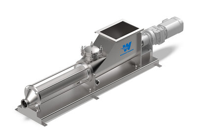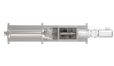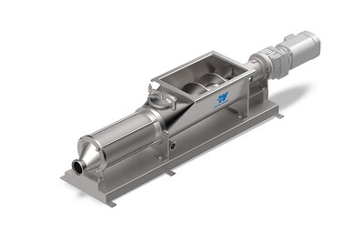 Die Wannenform der hygienischen Pumpe WANGEN PUMPS MX-R verhindert Ablagerungen an der Trichterwand, eine Überfütterung im Pumpentunnel sorgt für gute Fördereigenschaften.